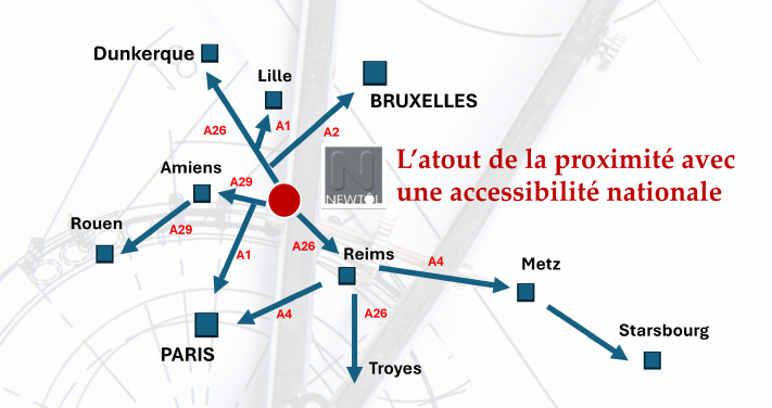 L’entreprise est proche d’un réseau autoroutier dense idéalement située entre Paris et Lille, ce qui permet un accès rapide à ses clients et fournisseurs.